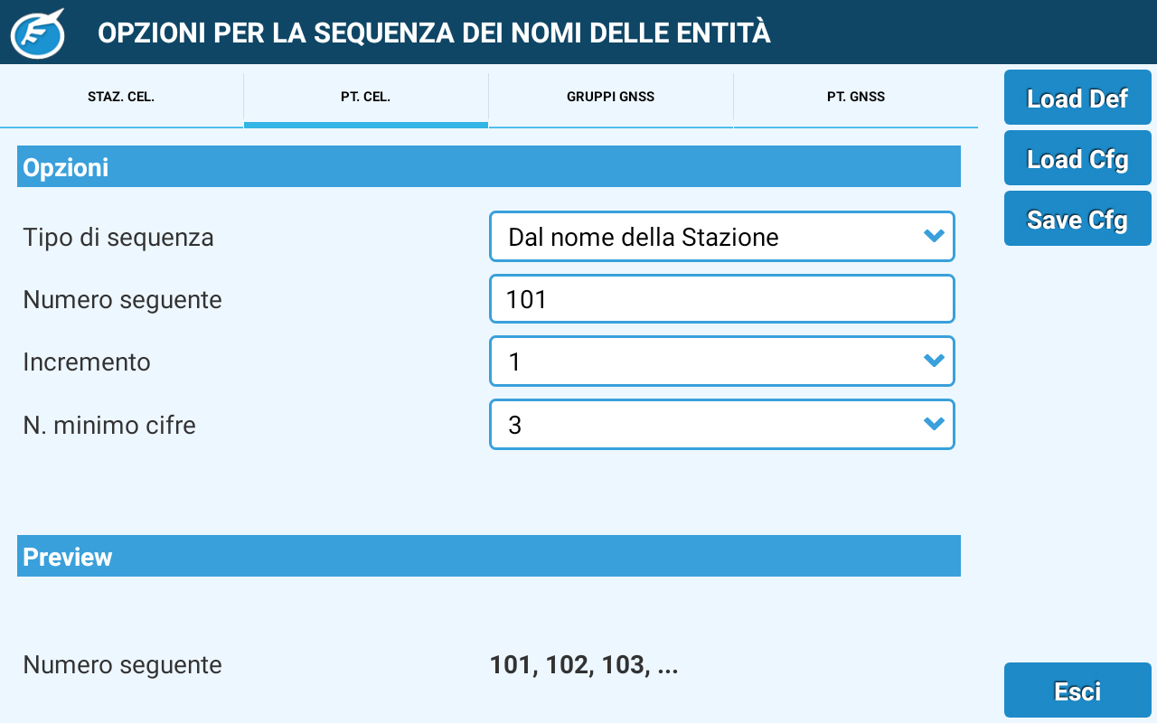 - Numerazione tipo Pregeo con punti in sequenza relativamente al nome della Stazione